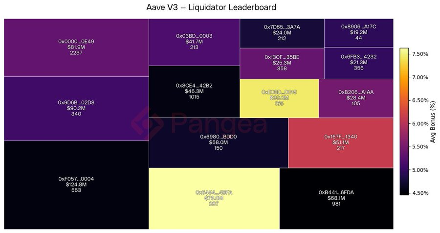 Although Aave liquidations are open to anyone, in practice they are dominated by specialized players. Competition is intense, as multiple liquidators attempt to capture the same opportunity, and success often depends on paying block builders to prioritize transactions. This bidding war for execution erodes profits, creating a race to the bottom where only the most efficient liquidators with the lowest acceptable margins remain competitive.