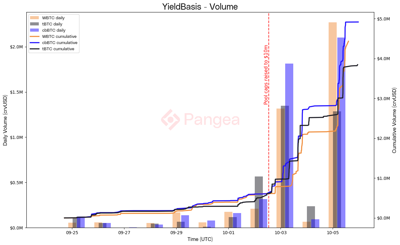 - Fetch all swaps on YieldBasis pools (crvUSD/WBTC/ crvUSD/cbBTC, crvUSD/tBTC) from Pangea up to 23:59 on Oct-5.