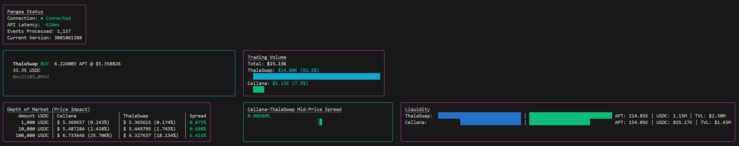 In this tutorial, I’ll walk you through how I used Pangea and Claude to build an app which calculates depth-of-market (DOM) quotes on Aptos and compares the spread between DEXs in real-time.